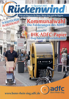 Der "Rückenwind" ist das Fahrrad-Magazin für Bonn, Rhein-Sieg und die Region. Jedes Heft informiert über unser reichhaltiges Tourenangebot, ADFC-Veranstaltungen und -Aktionen, Radreisen und unsere verkehrspolitischen Aktivitäten.